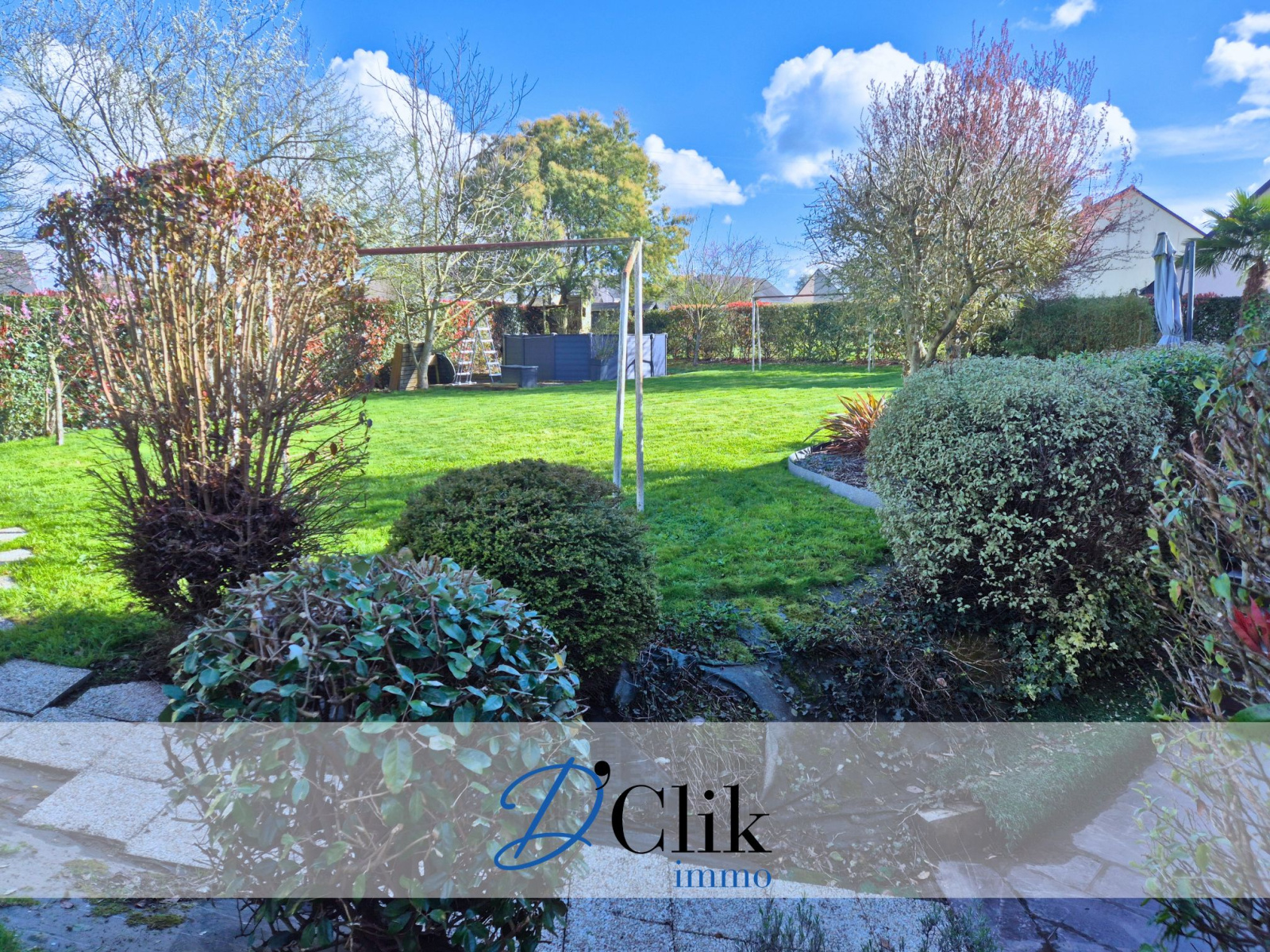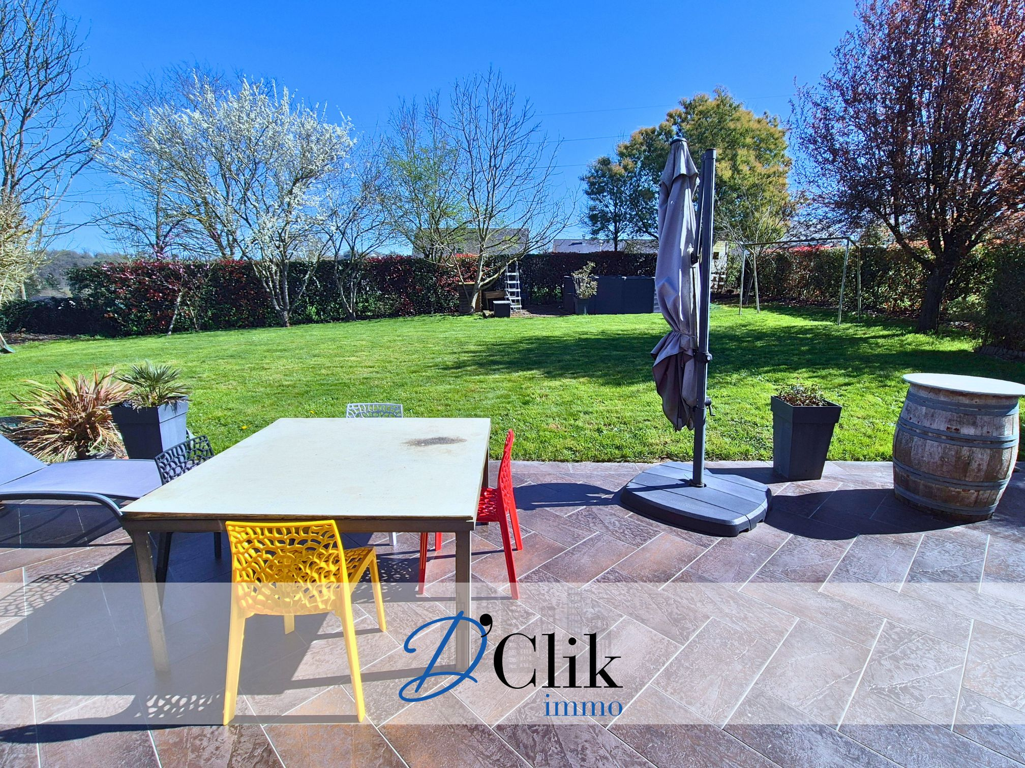 L'ensemble se situe sur un terrain arboré de 870 m² environ avec double terrasse.