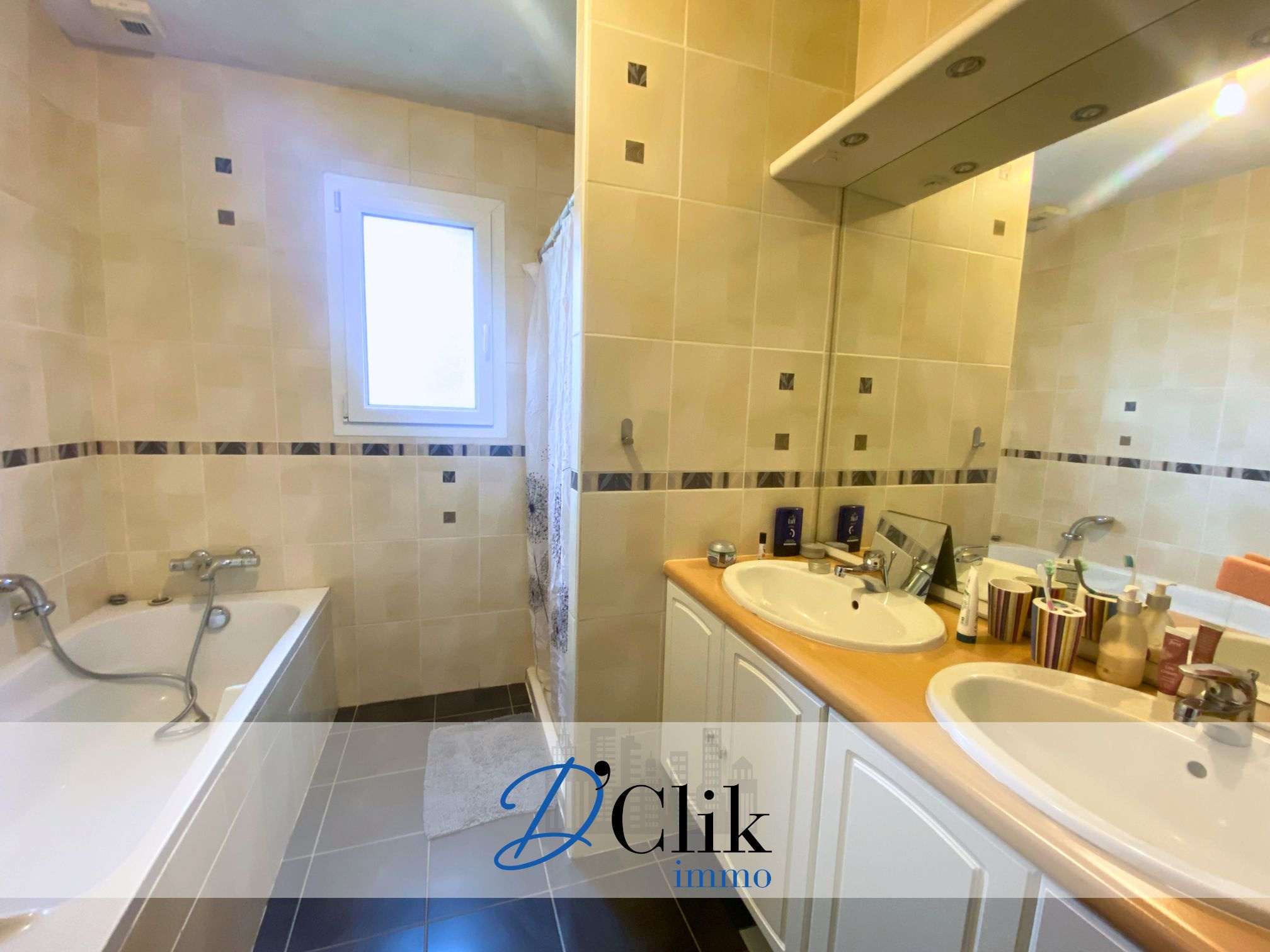 Au premier demi niveau, vous trouverez une mezzanine servant de bureau, deux chambres et une salle de bain complète avec douche et baignoire.