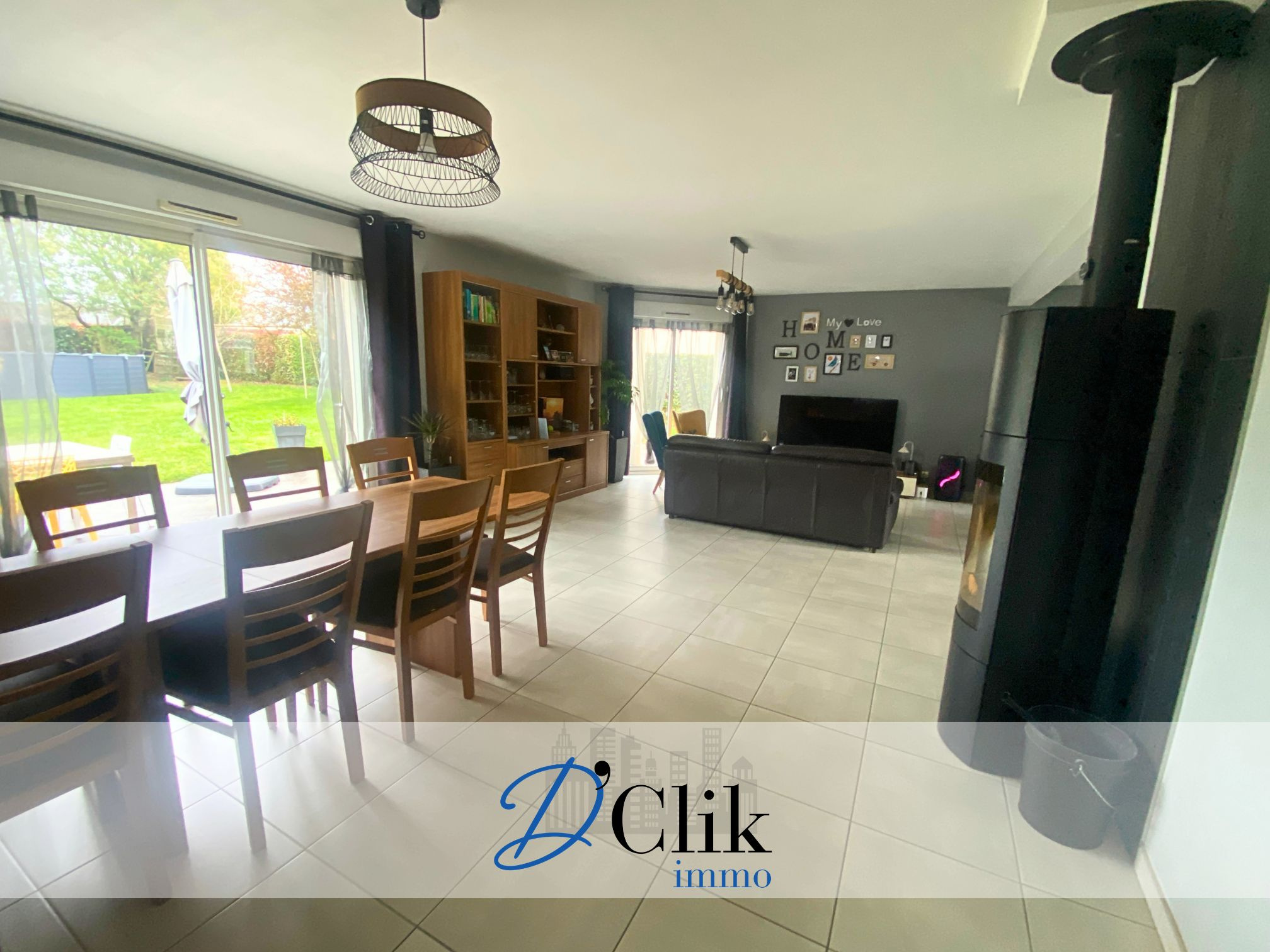 Double garage avec porte sectionnelle motorisée. Piscine hors sol chauffée. Panneaux photovoltaïques.
